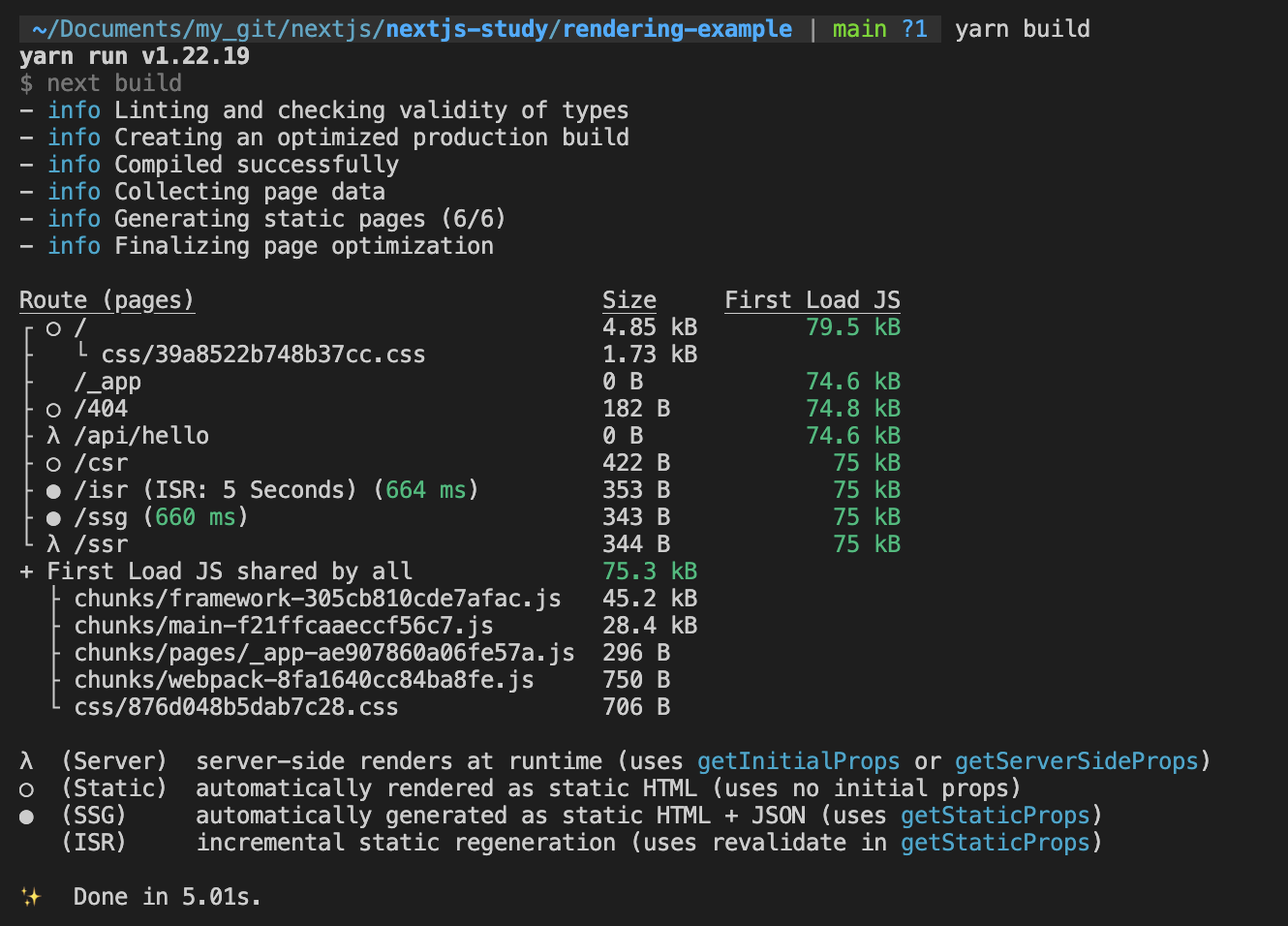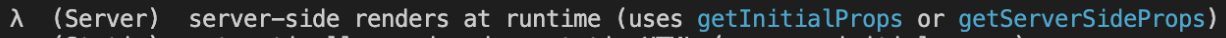 build 이후 터미널을 보면 하단에 렌더링이 어떤 방식으로 되었는지 표현됩니다.