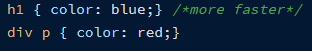 여기서 적용 속도로 보자면 h1이 div p 보다 빠릅니다. 그 이유는 div p 는 트리에서 p를 찾고 그 부모가 div인지 판단해야 하기 때문입니다. 참고(www.youtube.com/watch?v=gkTy6G4FtMg)